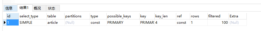EXPLAIN SELECT * FROM article WHERE id= 3
