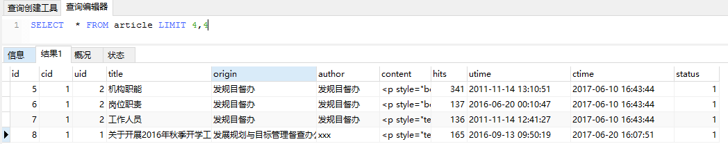 SELECT * FROM article limit 2,4 # 第三条开始查询前4条数据